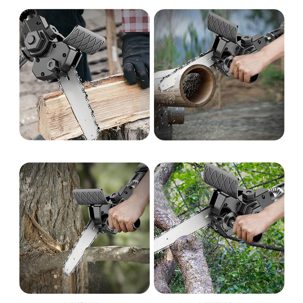 En comparación con las motosierras eléctricas tradicionales, esta pieza adaptadora de motosierra es más ligera y portátil, además de más fácil de almacenar. El mango auxiliar también se puede montar fácilmente; puedes sujetarlo firmemente al usar la máquina, lo que proporciona una experiencia de uso cómoda.