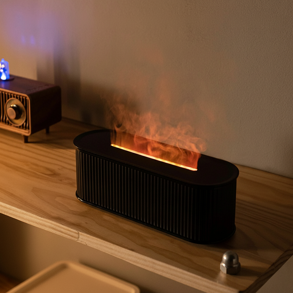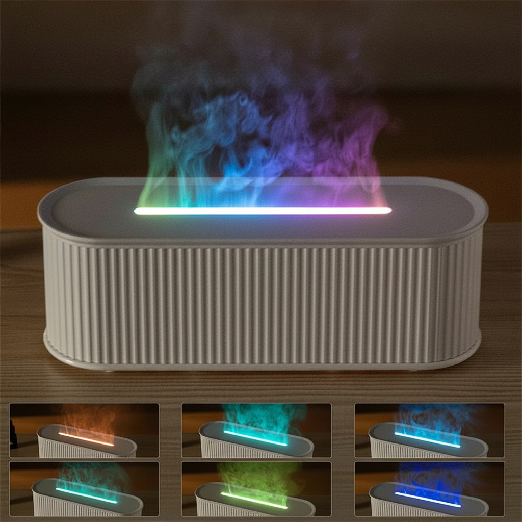 | Toque Estético Único 🎨 | La simulación de Llama de Colores (Simulation Colorful Flame Fragrance Machine) añade un elemento visual hipnótico y sofisticado. Es más que un humidificador, es una pieza de decoración. |