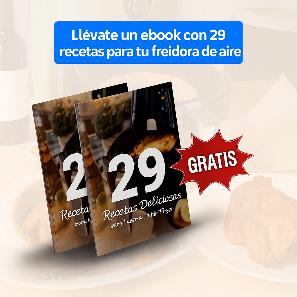 Compra el kit de 50 o 100 unidades del Protector Antiadherente para Freidora de Aire y recibe GRATIS en tu correo electrónico el ebook “29 recetas para Freidora de Aire”.